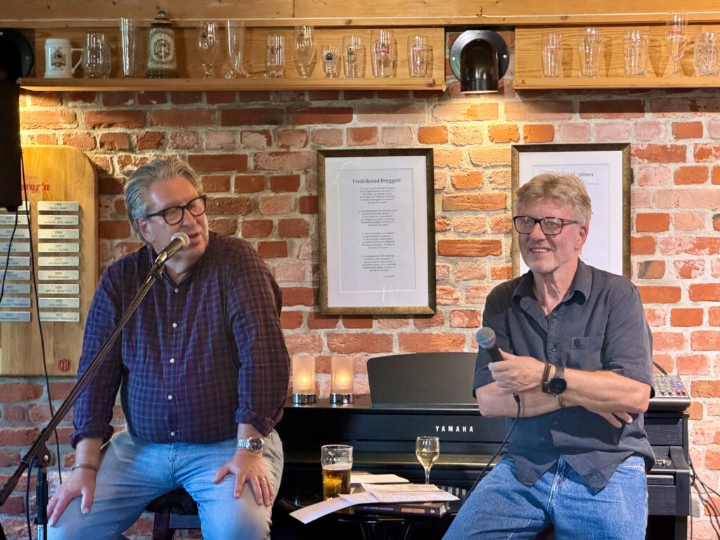 Ulf Morten Davidsen lanserte sin bok Harmageddon på Fredrikstad Bryggeri, og Bernt var bokbader.